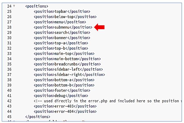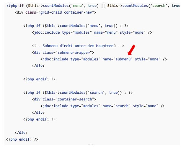 - Ziel: Neue Modulposition submenu, direkt unter dem Hauptmenü