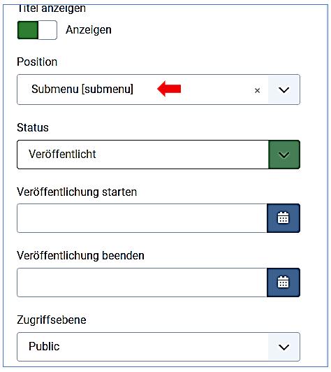 Neue Modulposition submenu anlegen
