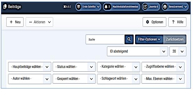 - Man einen Artikel, eine Kategorie, einen Menüeintrag oder ein Modul nicht mit "Speichern & Schließen" oder "Abbrechen" verlässt